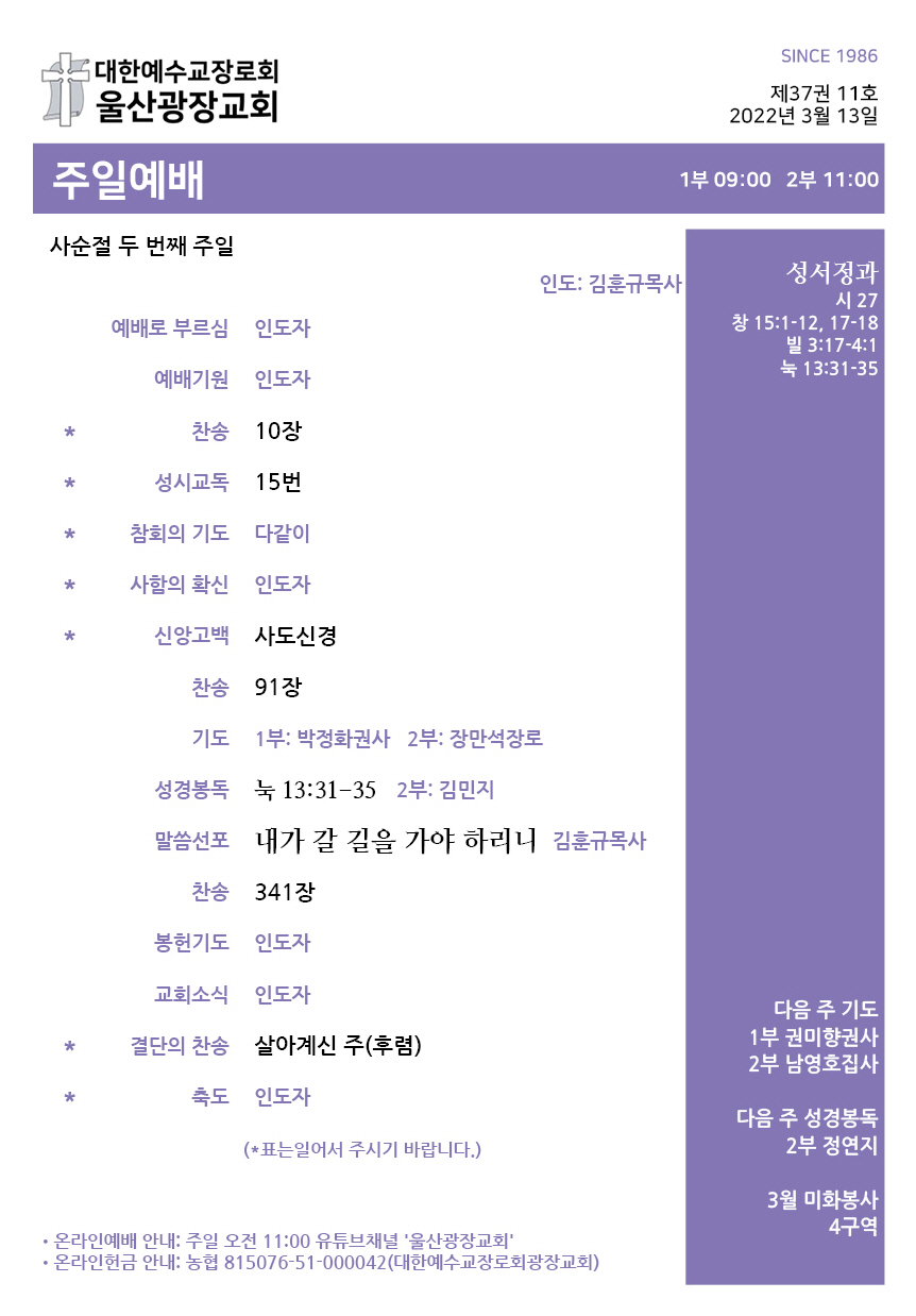 2022년 3월 13일 주보