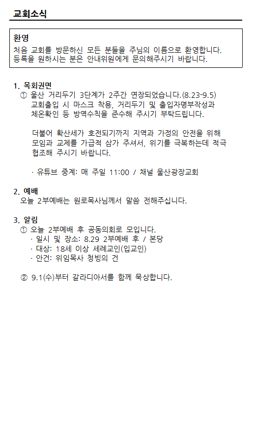 2021년 8월 29일 주보